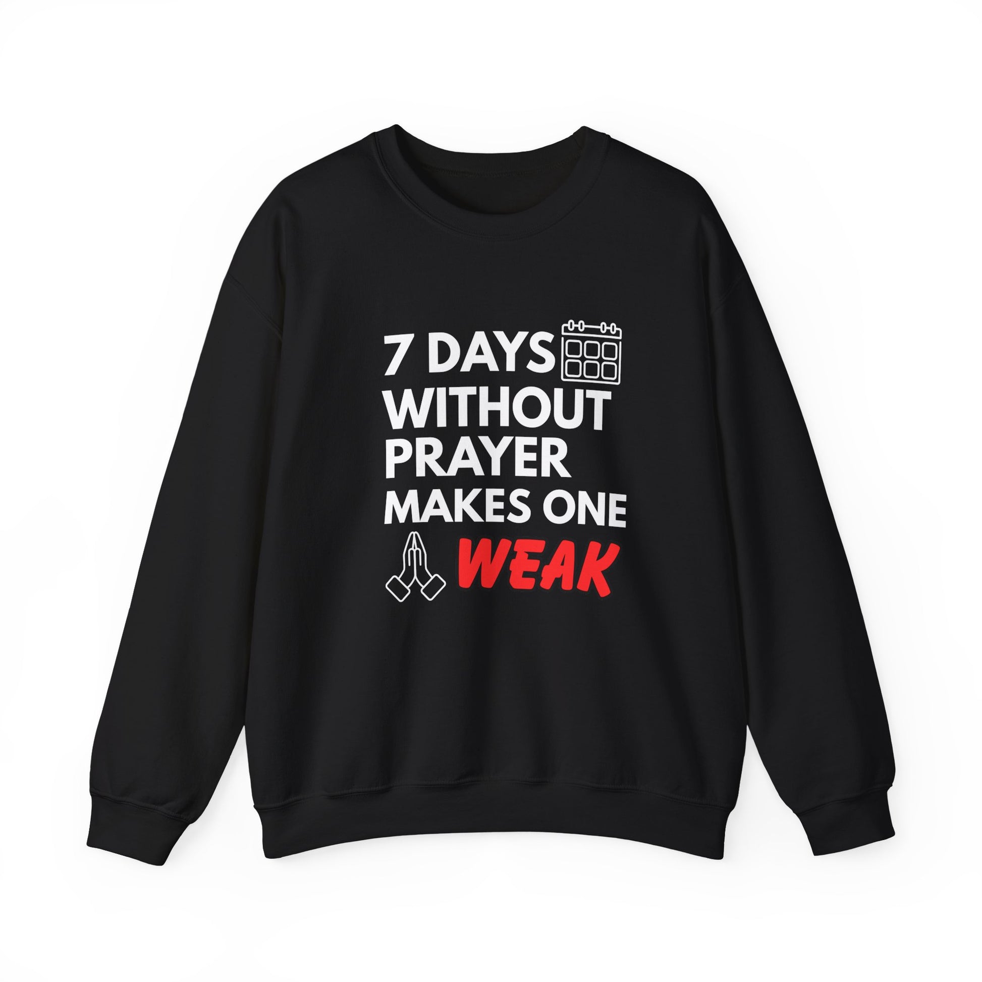 “7 Days Without Prayer Makes One Weak” Religious Pun Crewneck Sweatshirt – Faith & Humor Combined