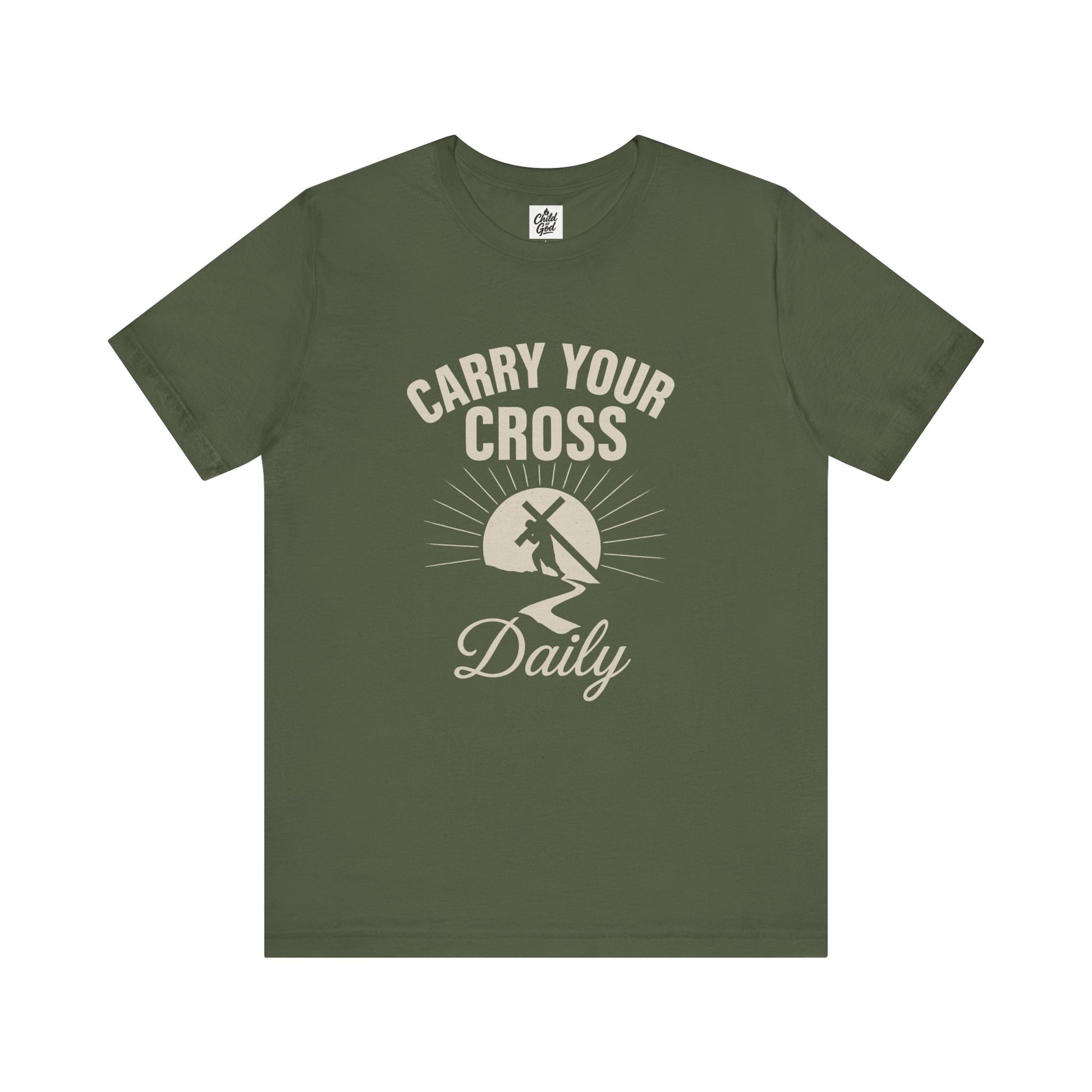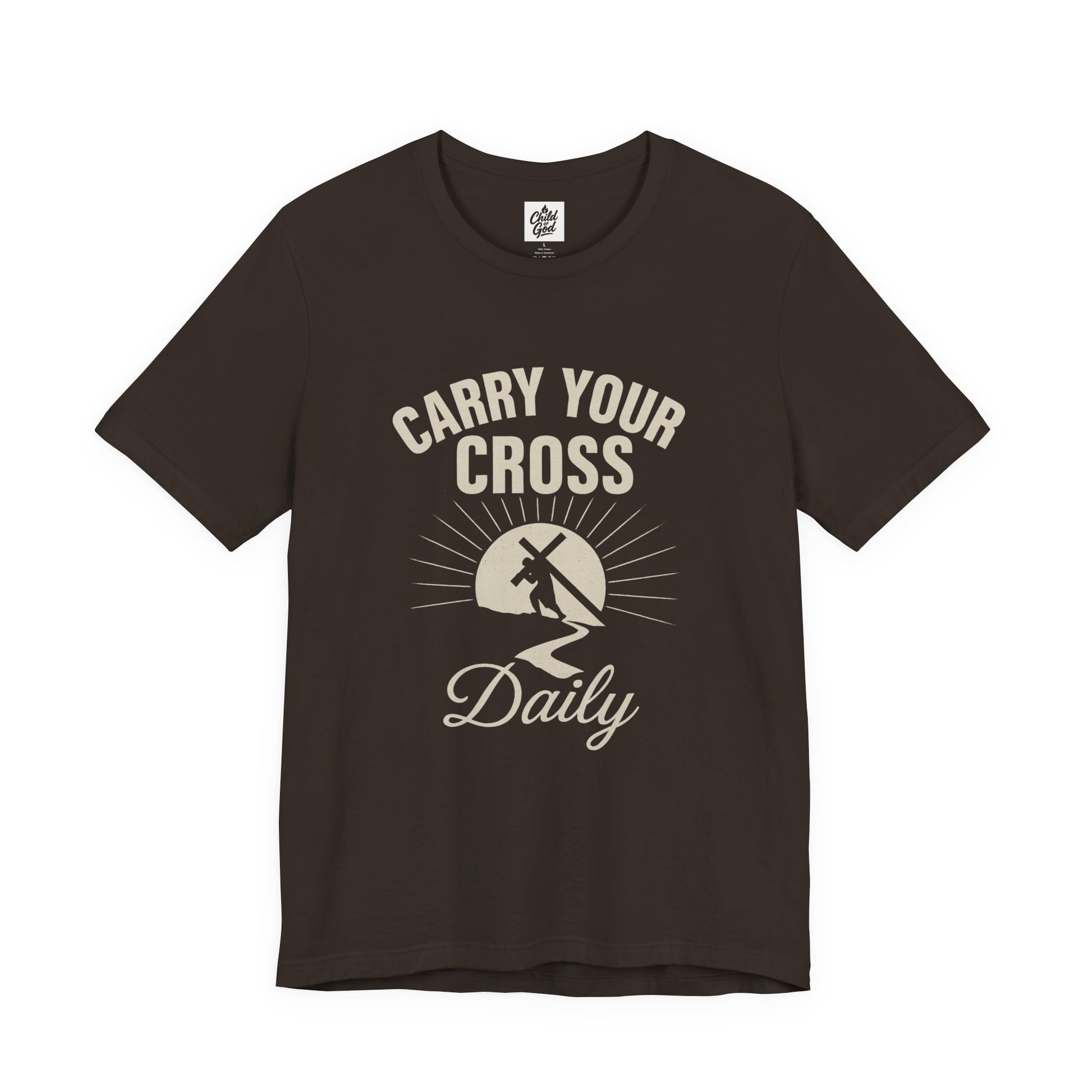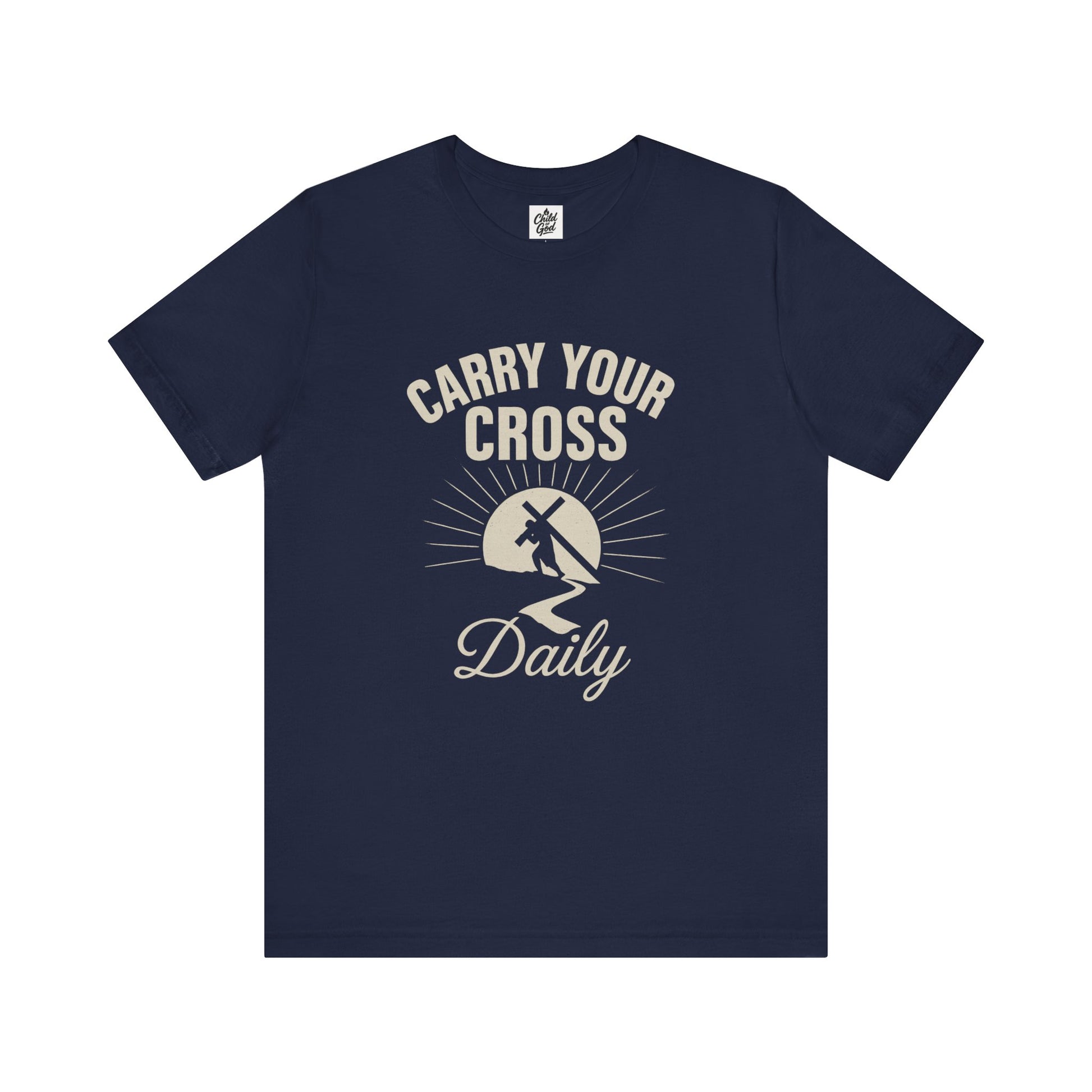 "Carry Your Cross Daily" . Unisex Jersey Short Sleeve Tee - Casual Christian Graphic Shirt for Positive Vibes