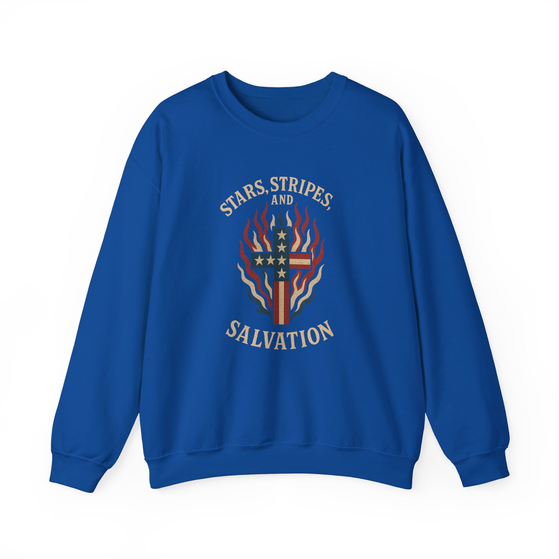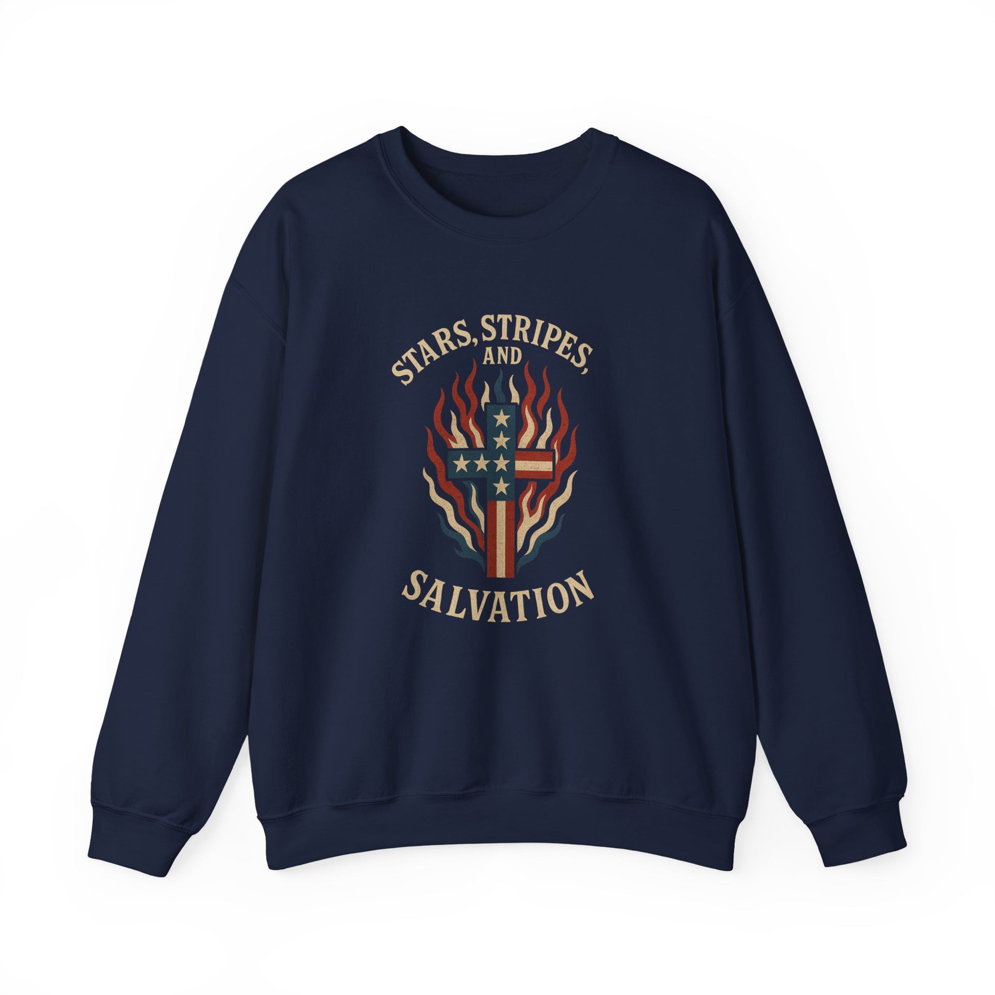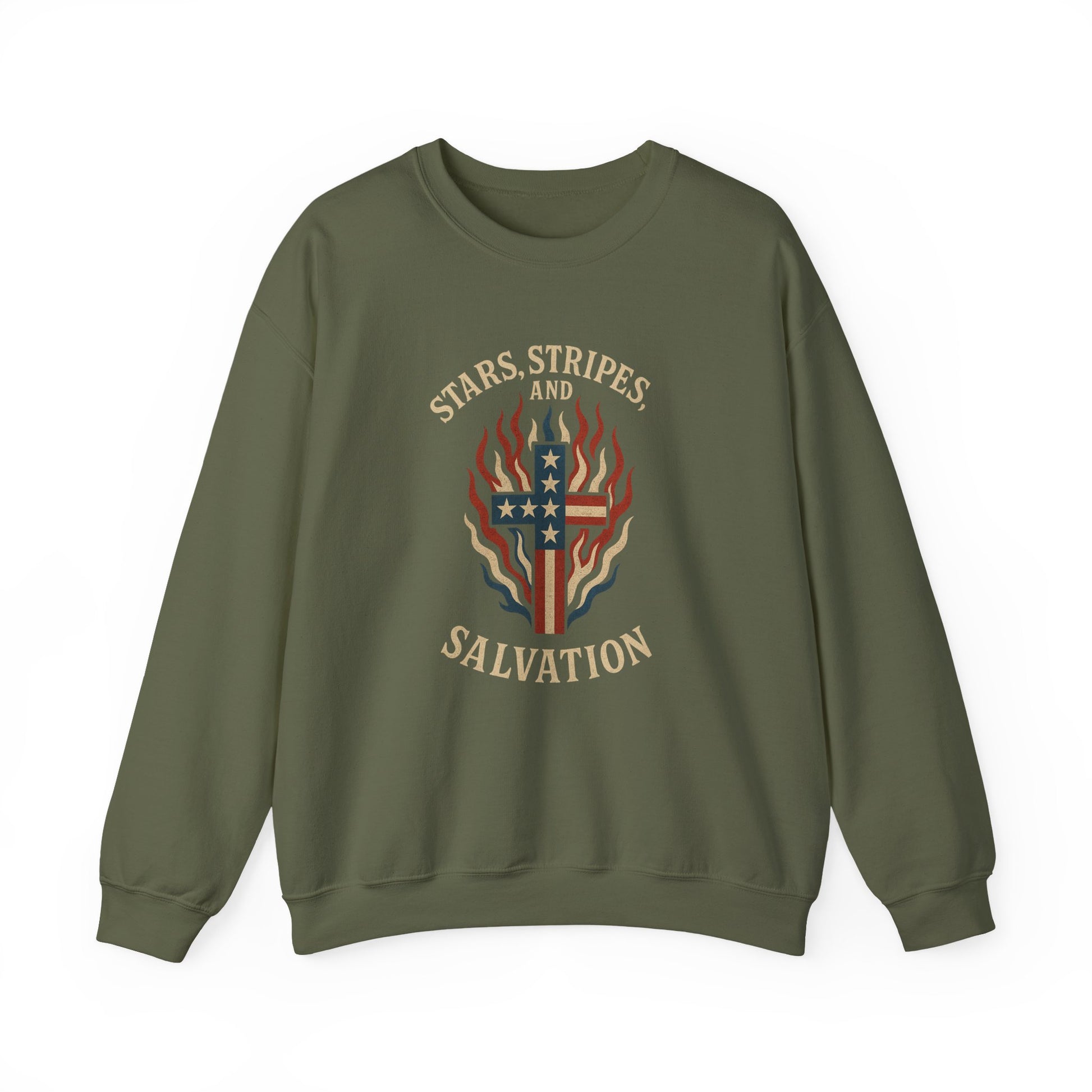 “Stars, Stripes, and Salvation” Crewneck Sweatshirt – Patriotic Christian Apparel